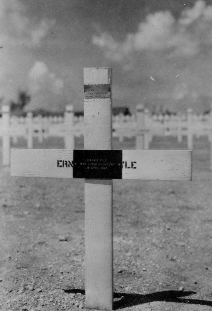 War correspondent Ernie Pyle was killed by Japanese machine gun fire on Apr. 18, 1945, this is his original grave site. He was later moved to Okinawa and finally moved to the