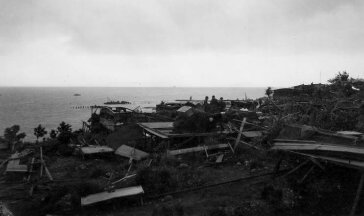 MaritimeQuest is grateful to John for making this never before published collection available for digital preservation and publication. It adds a valuable insight to what it was like in the final days of the war in the Pacific. John W. Parmer served in the U.S. Navy from Dec. 4, 1944 until Feb. 9, 1946 in U.S. Naval Construction Battalions (Seebees) 24th NBC, 27th NBC and USN CBMU 630 Maintenance unit. The majority of the photos in this collection were taken by Lt. Stewart P. Robinson, the unit chaplin, and were given to John. It is not known what became of Lt. Robinson after the war. The majority of the photos were taken at and around Okinawa and is presented in the order of the caption list provided by John, there has been no attempt to put them in chronological order. Additional notes appear in yellow text below the photos. |