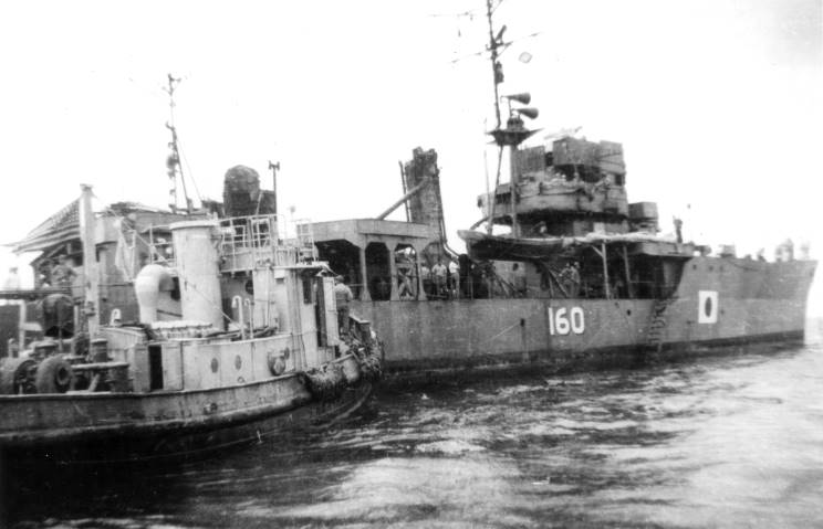 A U.S. flagged tug seen alongside the Japanese warship. |