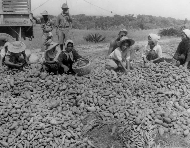 This series of four photos show a Japanese warship arriving at Naha harbor with orders to to repatriate Korean civilians to their homeland. |