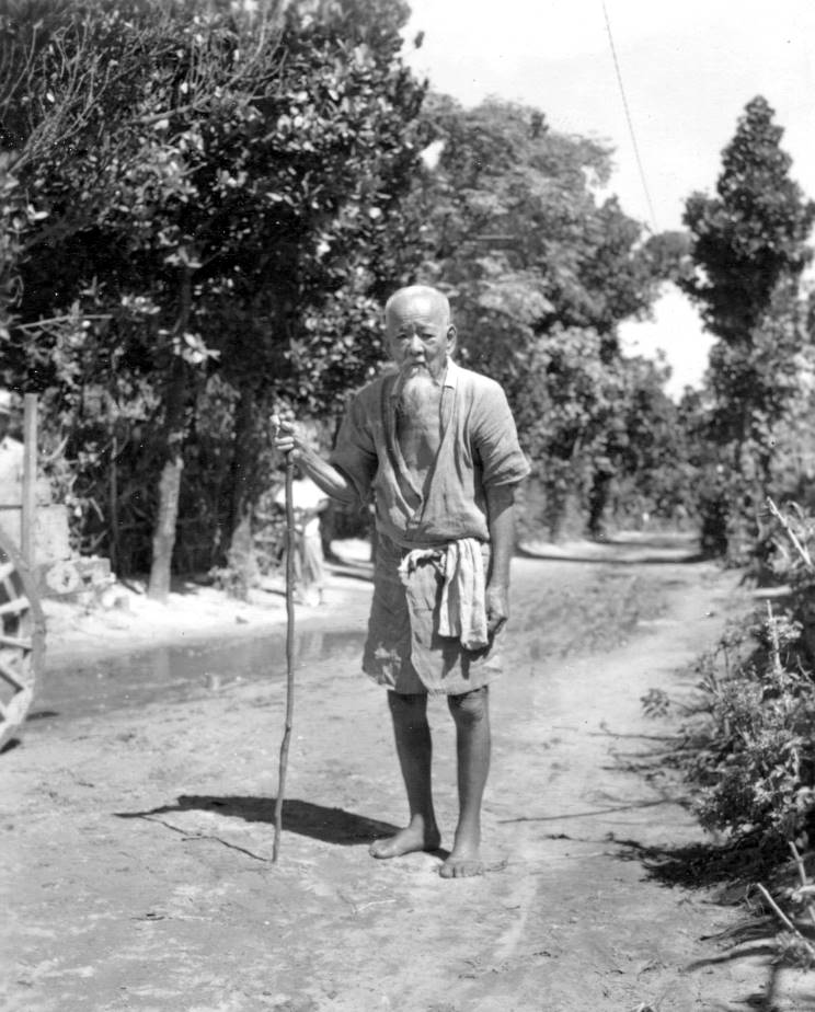 Native gent barefoot with beard. |