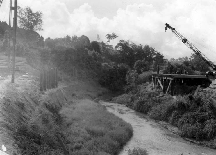 Important bridge we built. I had flood lights on it to work at night when a Jap bomber passed overhead. His bombay doors didn't open. |