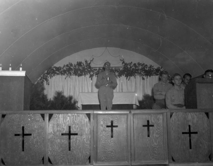 MaritimeQuest is grateful to John for making this never before published collection available for digital preservation and publication. It adds a valuable insight to what it was like in the final days of the war in the Pacific. John W. Parmer served in the U.S. Navy from Dec. 4, 1944 until Feb. 9, 1946 in U.S. Naval Construction Battalions (Seebees) 24th NBC, 27th NBC and USN CBMU 630 Maintenance unit. The majority of the photos in this collection were taken by Lt. Stewart P. Robinson, the unit chaplin, and were given to John. It is not known what became of Lt. Robinson after the war. The majority of the photos were taken at and around Okinawa and is presented in the order of the caption list provided by John, there has been no attempt to put them in chronological order. Additional notes appear in yellow text below the photos. |