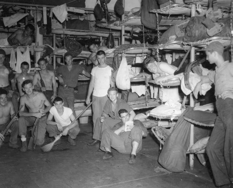 Bunks on USS Rawlins APA-226. Mine was the top one. |