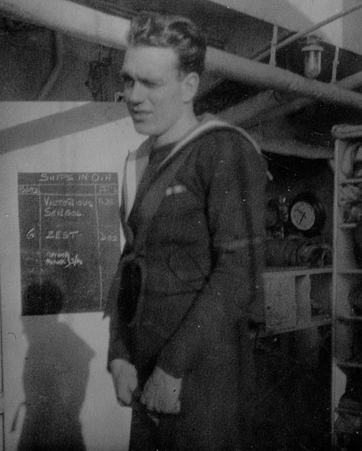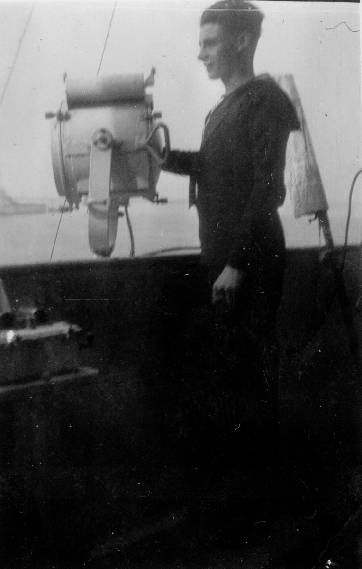 Ordinary Signalman Whibley seen at a 10" light on HMS Anson.