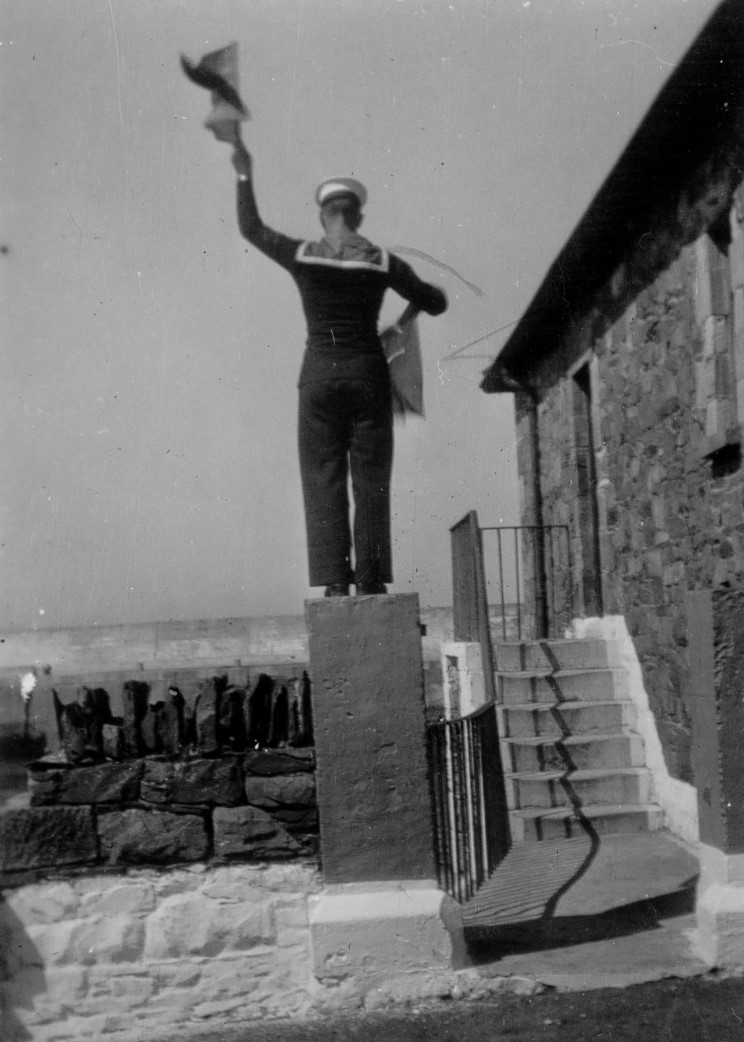 May 1948: A "stripey" signaling the fleet from a signaling station at Bangor, County Down, Northern Ireland. |