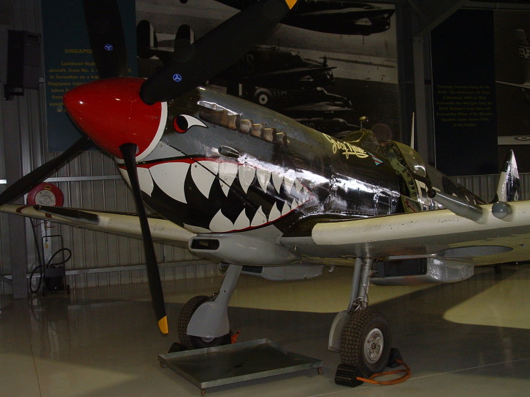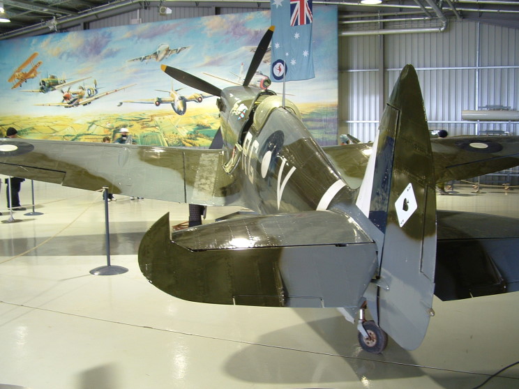 The Supermarine Spitfire Mk VIII "Grey Nurse" seen on static display at the Temora Aviation Museum. |