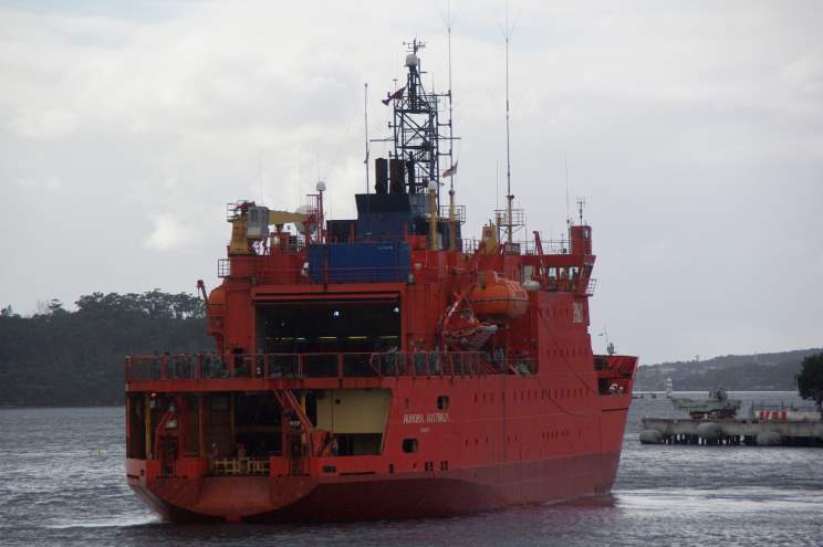 June 29, 2011: Aurora Australis departing Garden Island Naval Base, Sydney, Australia. |