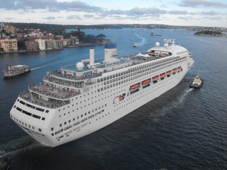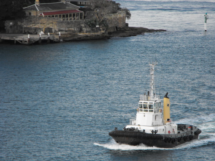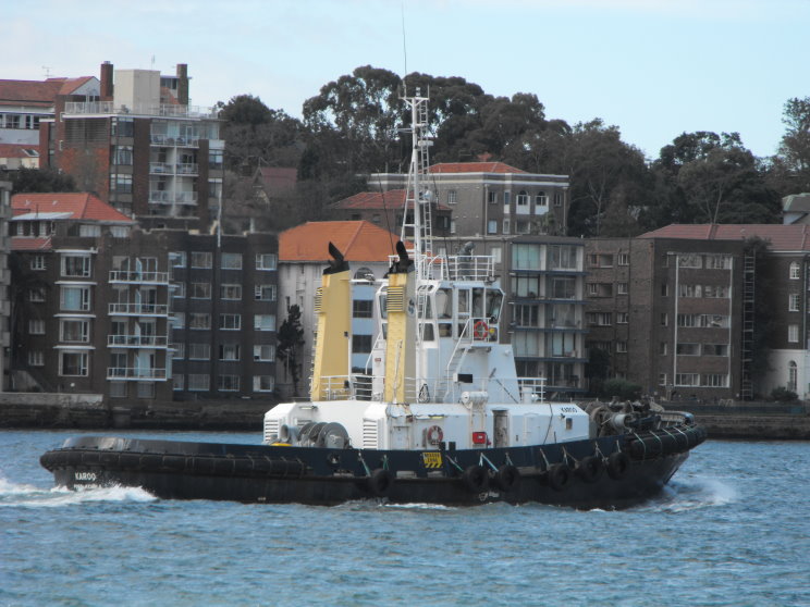 March 20, 2009: Pacific Dawn under escort of the tugs Karoo and Watagan (out of shot at stern) in Sydney, Australia. |