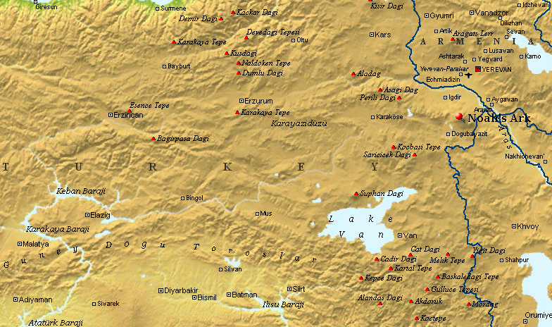 The only vessel to survive the Great Flood of 3,000 B. C. the ark was set down atop of Mt. Ararat in modern day Turkey. (39.42.10N - 44.16.30E) The wreck had reportedly been discovered by several people, however no definitive proof has been offered. |