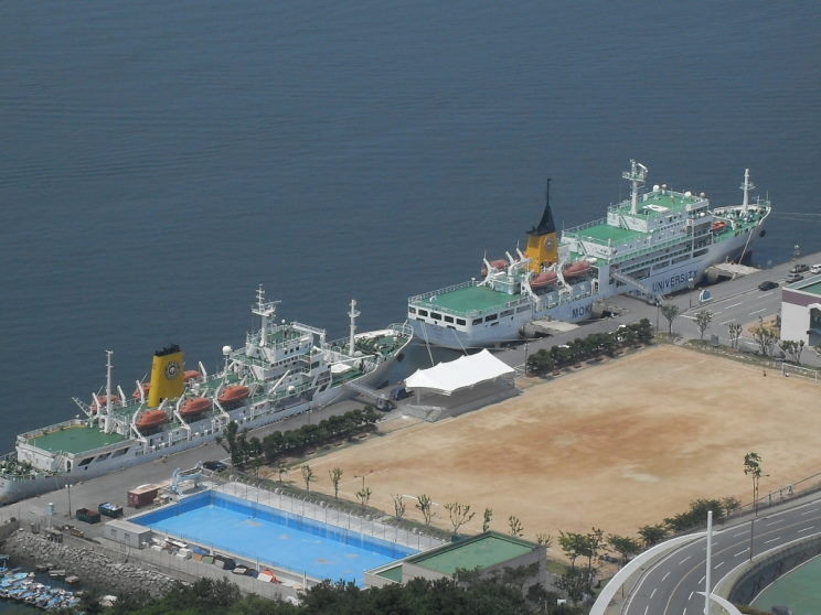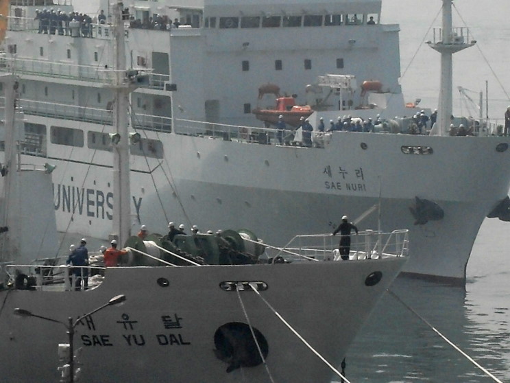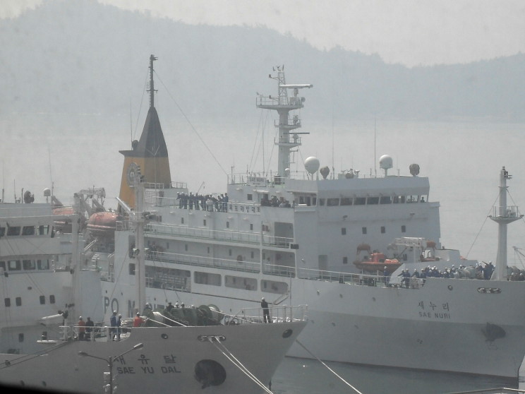 April 9, 2009: Sae Yu Dal (foreground) and Sae Nuri seen off the Mokpo Maritime University in Mokpo, Republic of Korea. |