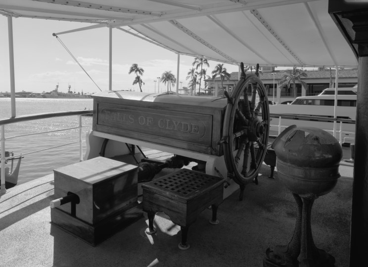 April 1998: The ship's Wheel located on the stern of the Falls of Clyde.