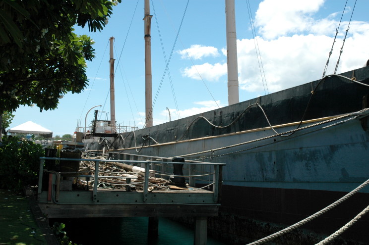 September 5, 2008: Some of the removed rigging is seen on the dock beside the Falls of Clyde. |