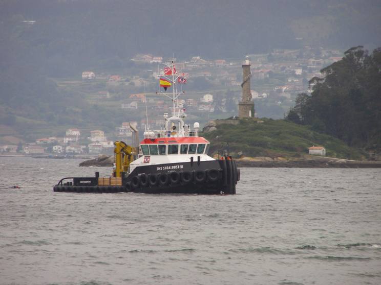 April 16, 2014: SMS Shoalbuster seen at Marin, Spain. |