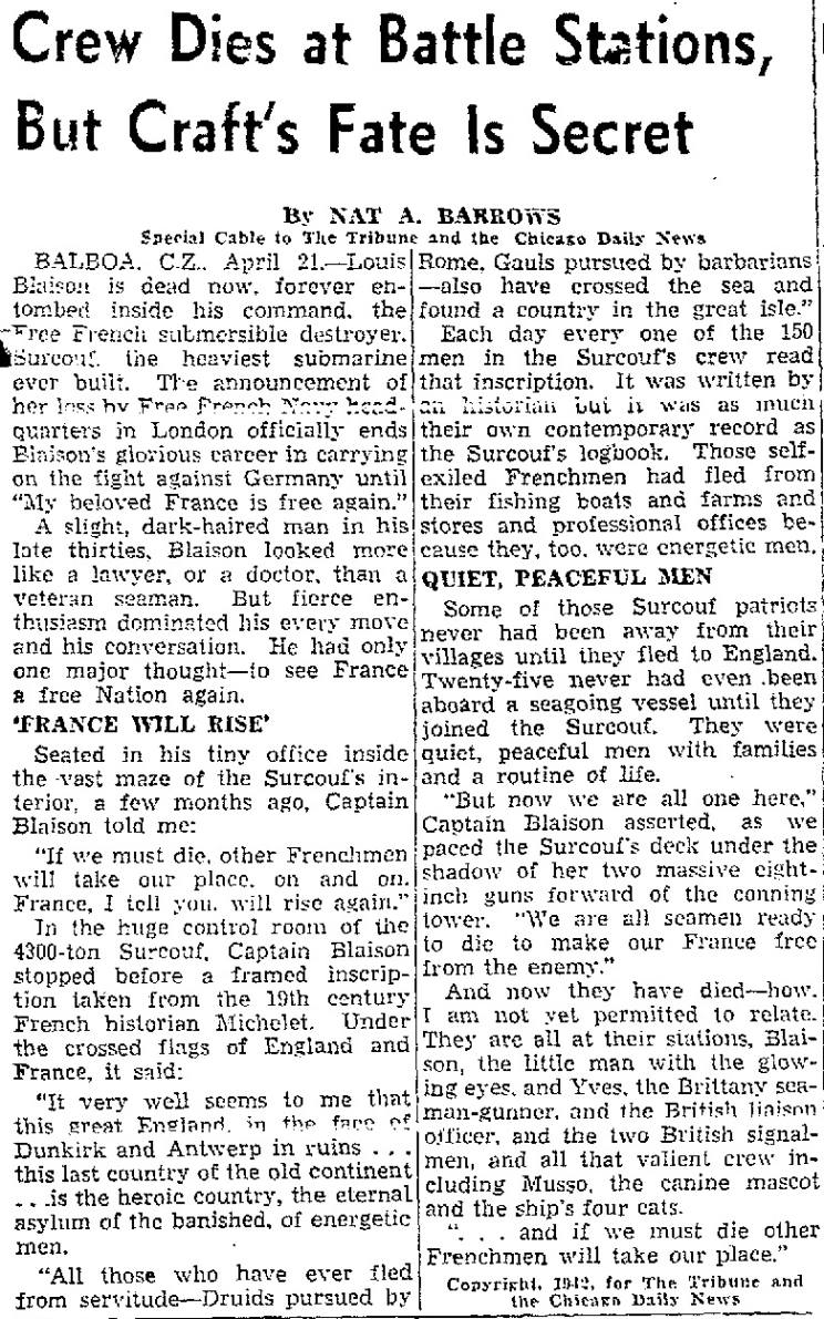 Article about Surcouf's commanding officer, Capitaine de frégate Georges Louis Nicolas Blaison.