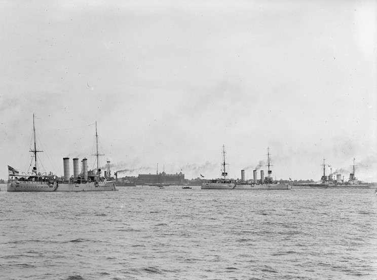 June 3-8, 1912: Left to right; SMS Bremen, SMS Stettin and SMS Moltke at Hampton Roads. |
