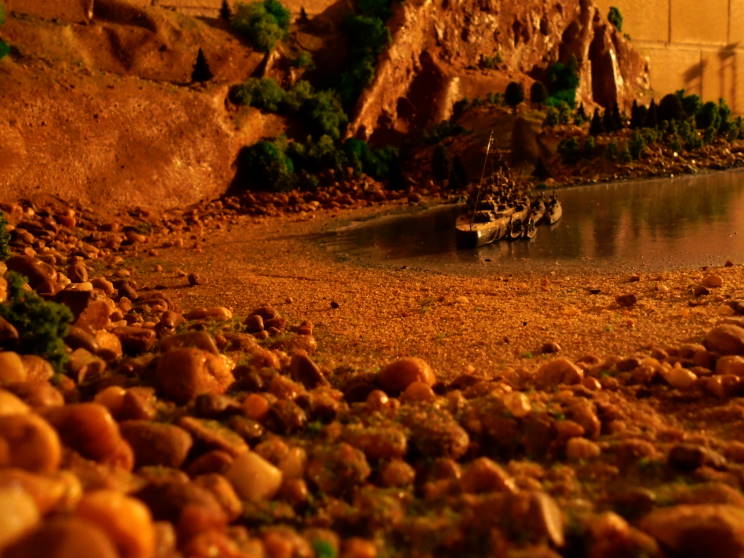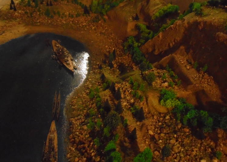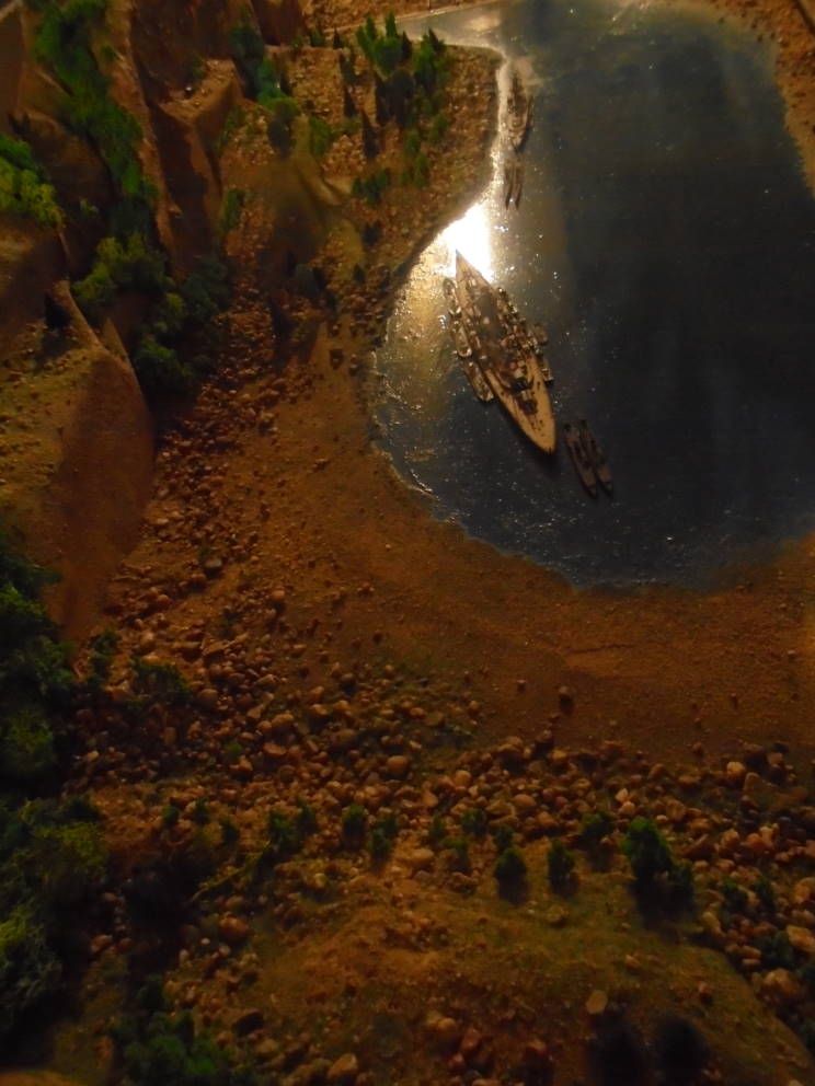 Diorama showing Tirpitz in Kåfjord, Norway. Tirpitz was stationed here for almost two years and was attacked several times, including once by X-craft. |
