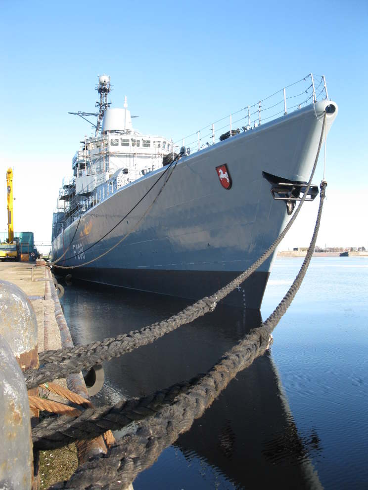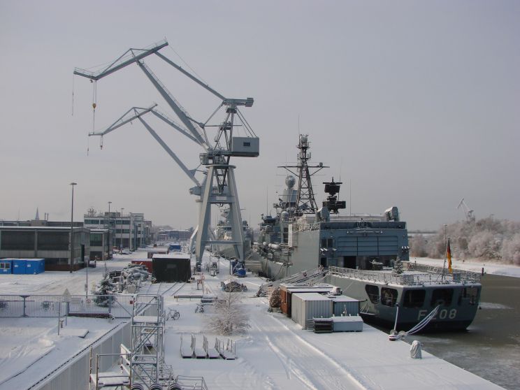 January 15, 2012: Niedersachsen F-208 seen at Neue Jade Werft GmbH, Wilhelmshaven, Germany. |