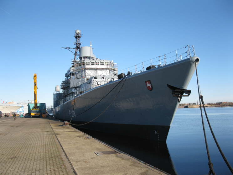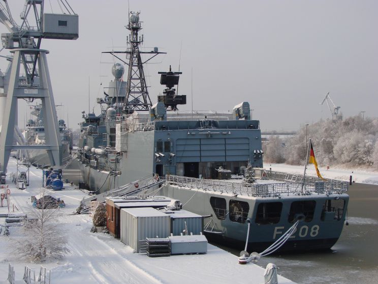 December 18, 2010: Niedersachsen F-208 and Bayern F-217 seen at the Marinearsenal, Wilhelmshaven, Germany. |