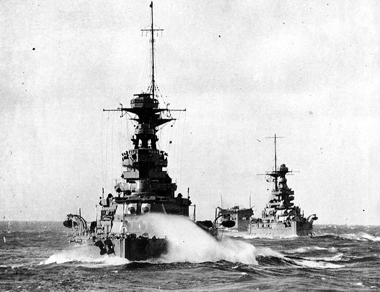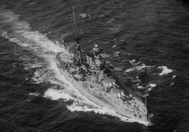 HMS Barham, HMS Malaya and HMS Argus during exercises in the Mediterranean off the Balearic Islands. |