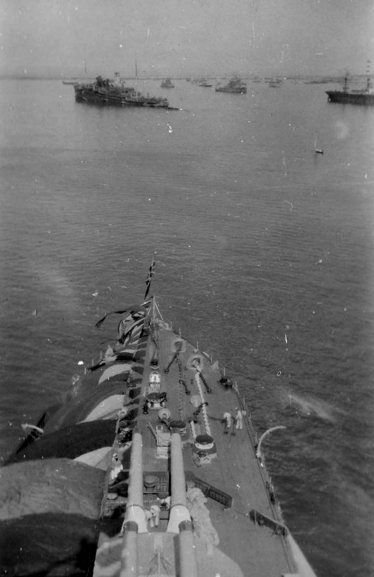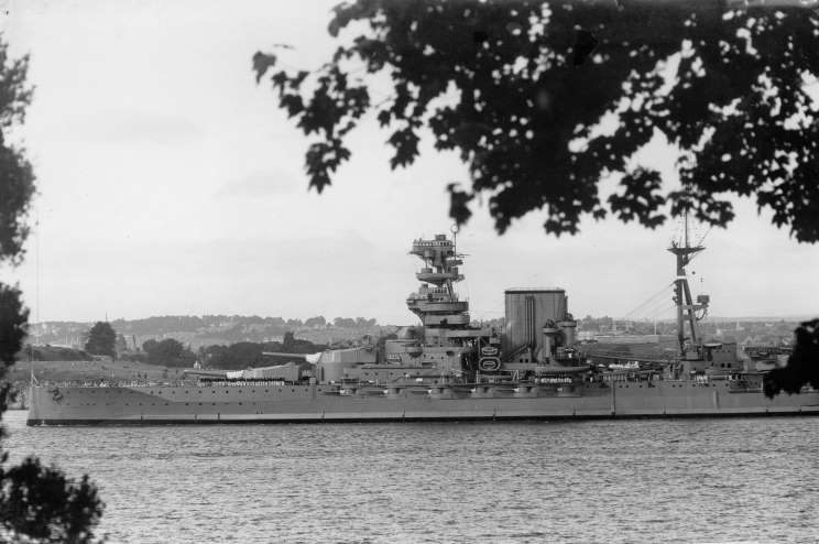 July 26, 1934: HMS Barham seen arriving at Devonport, England. |