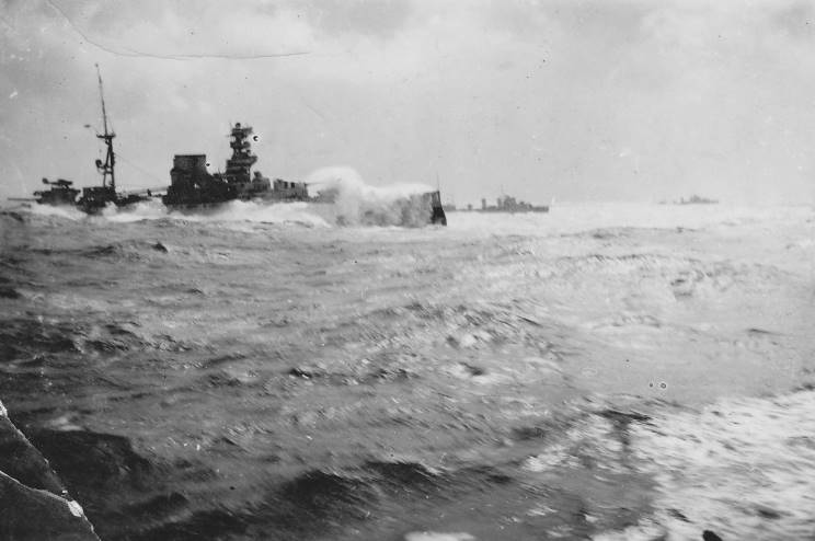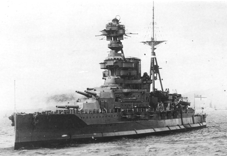 HMS Barham seen at sea during the Spanish Civil War Neutrality Patrol. |