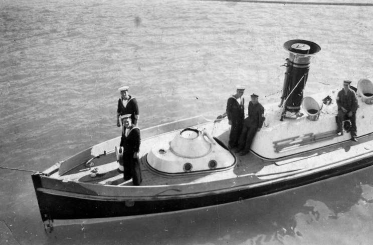 February 5, 1937: The picket boat from HMS Barham. Wilfred Reginald Butler is seen at right. |