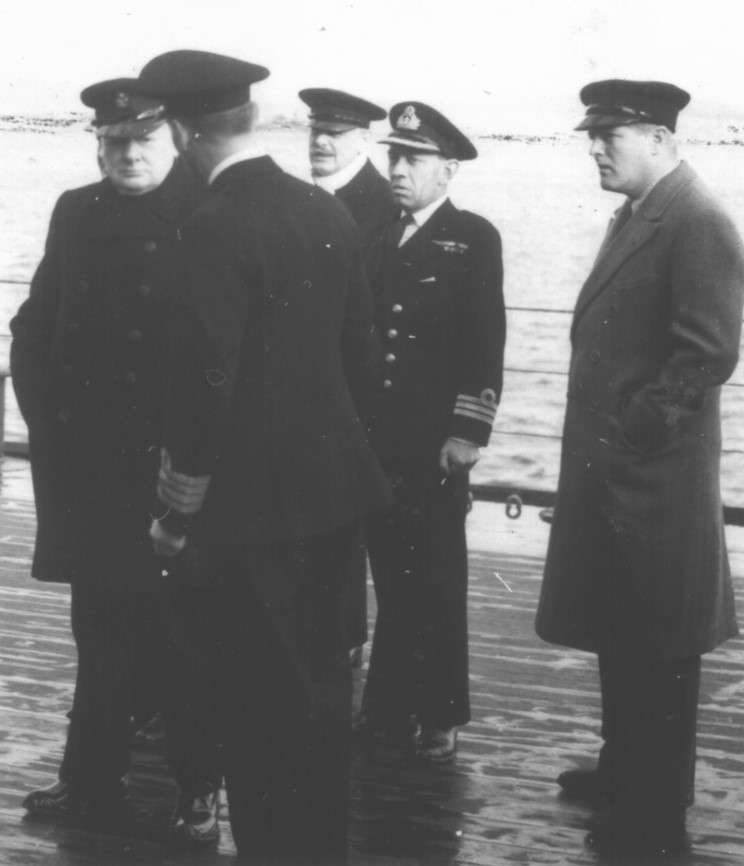 October 18, 1942: Prime Minister Sir Winston S. Churchill on board the HMS Howe speaking with Capt. Woodhouse. |