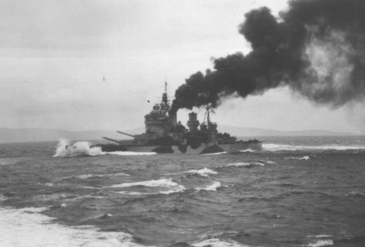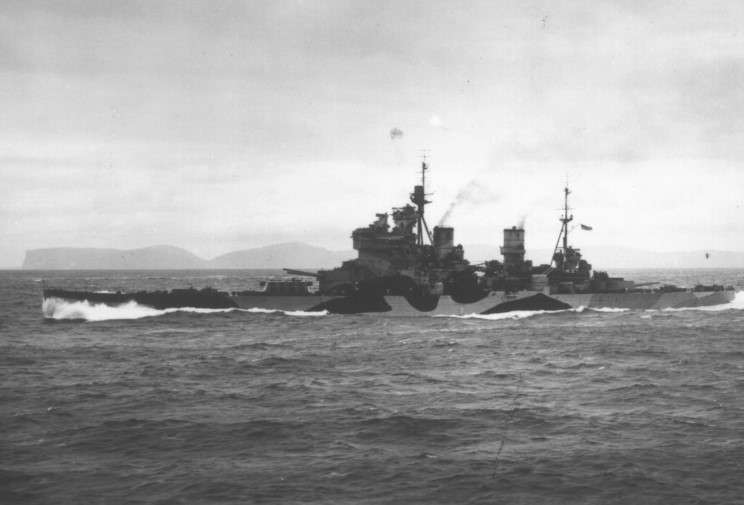 HMS Howe probably on sea trials off Scapa Flow in Sept. 1942. |