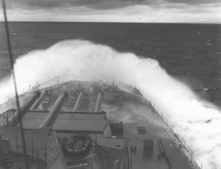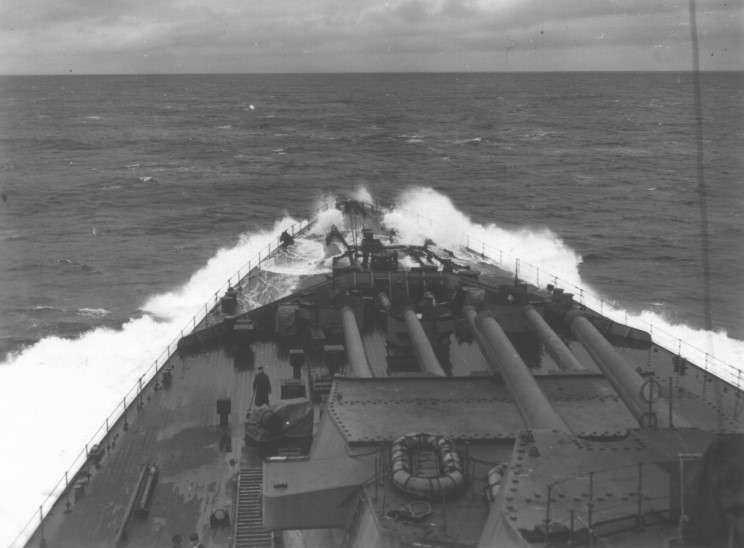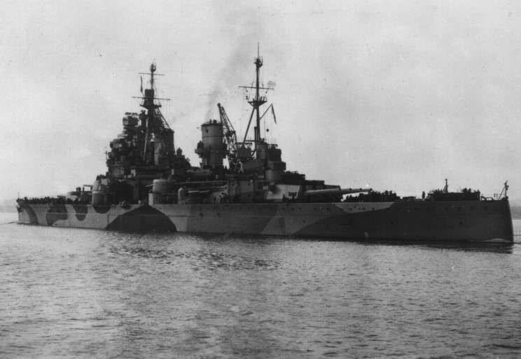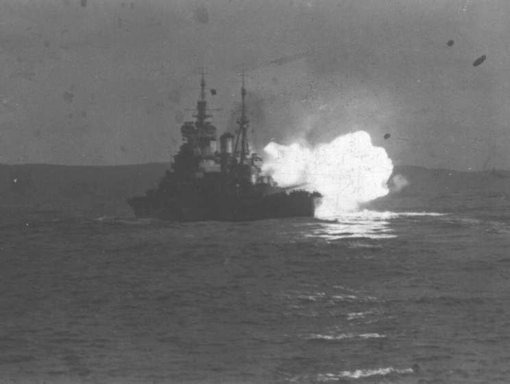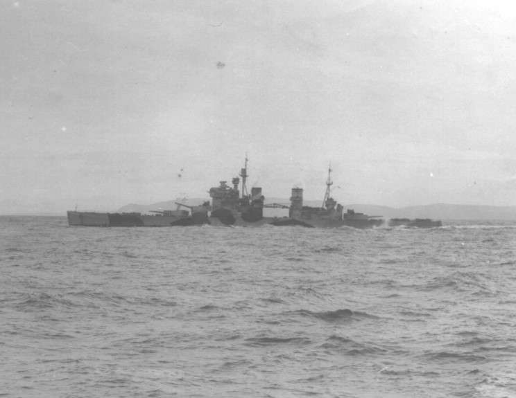 HMS Howe probably during gunnery practice off Scapa Flow Oct. 17, 1942. |