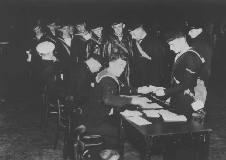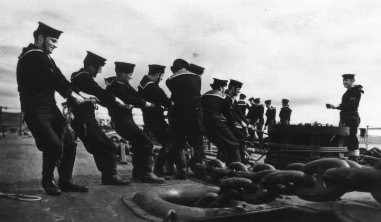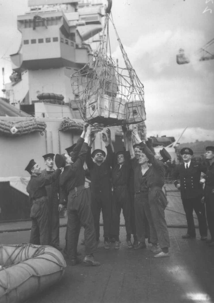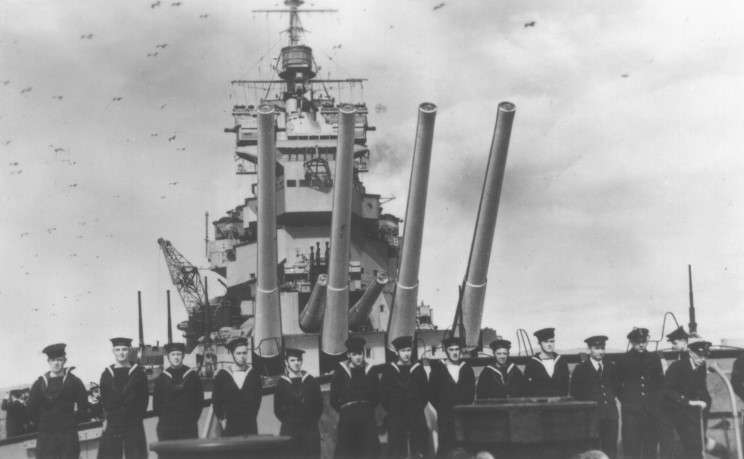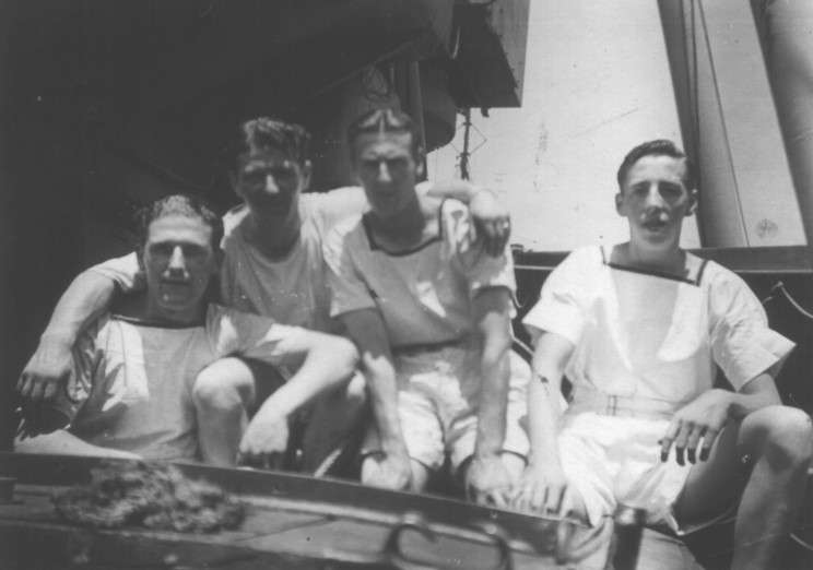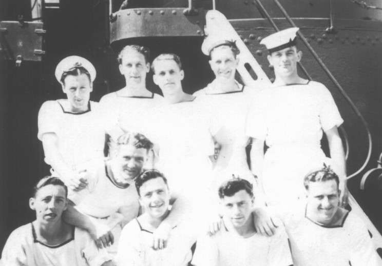 Crewmen on the HMS Howe, Able Seaman Edwin C. J. Reed is first on the right. |