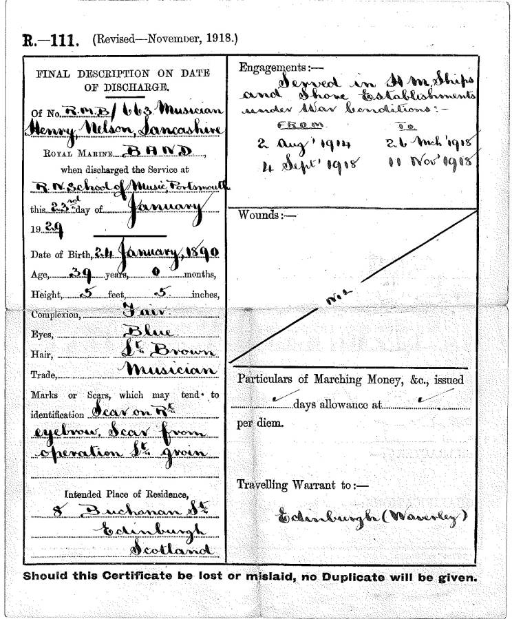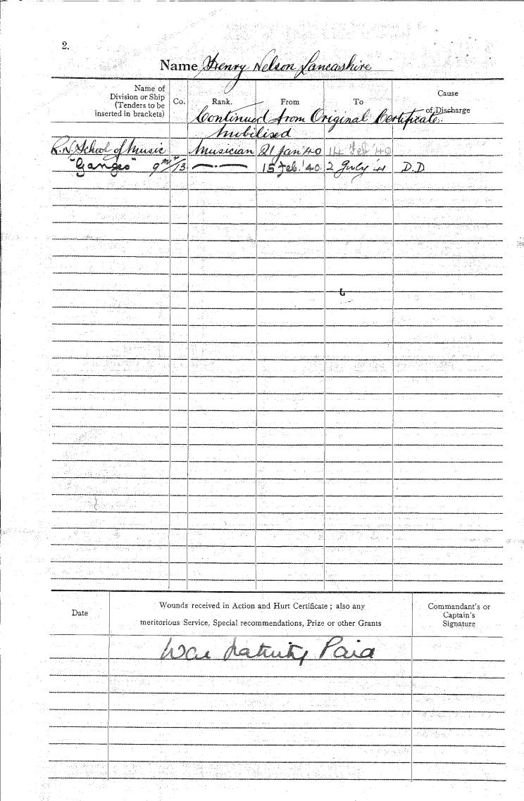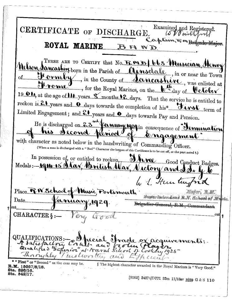Musician Henry Nelson Lancashire, RMB |