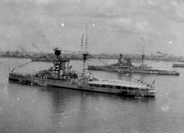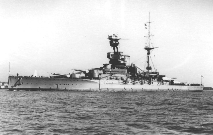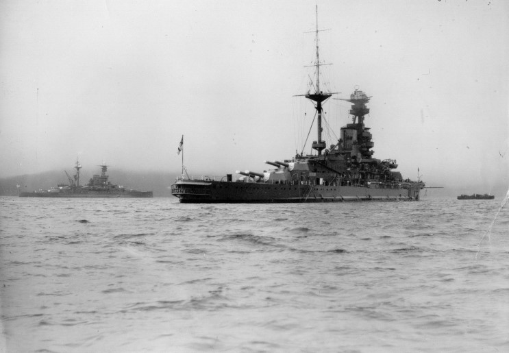 HMS Revenge and HMS Royal Oak (background), date and location unknown. |