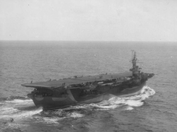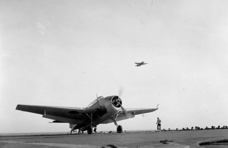 A Grumman Avenger, thought to be from 853 Squadron seen on the flight deck of HMS Arbiter. Another Avenger can be seen in the background. |