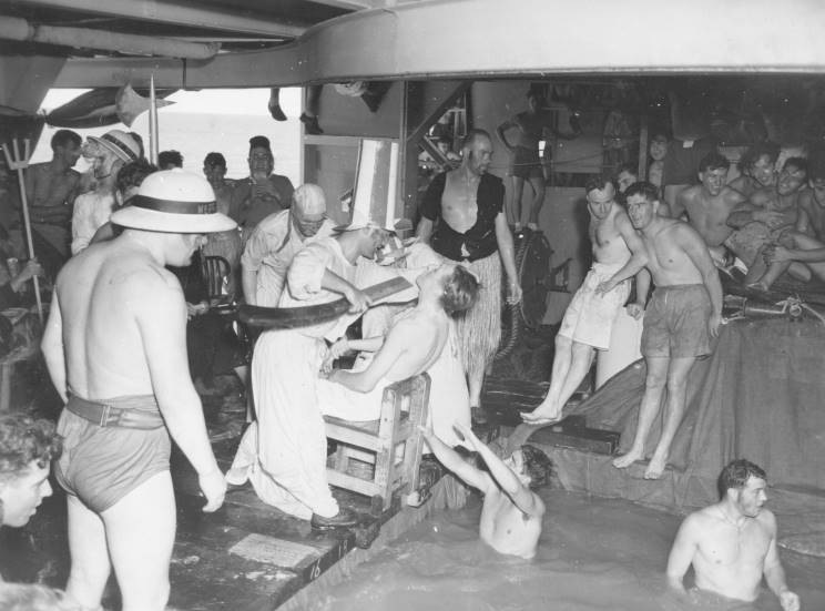 Crossing the Line ceremony on HMS Arbiter. |