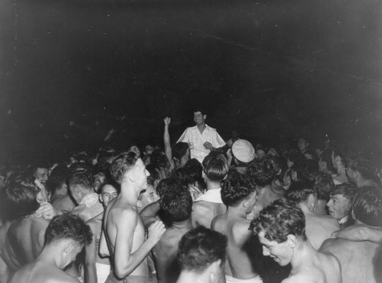 VJ night aboard HMS Arbiter. |