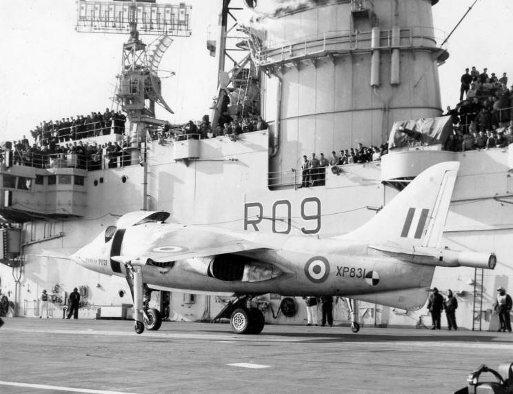 February 3, 1962: The Hawker P-1127 (XP831) after landing successfully on HMS Ark Royal R-09. |