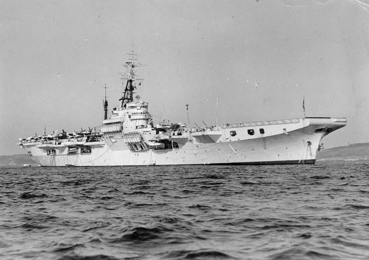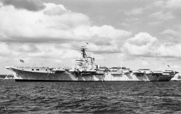 HMS Theseus seen off the Scilly Islands in the 1950's. |