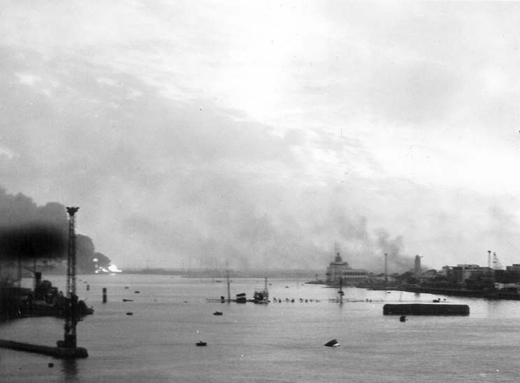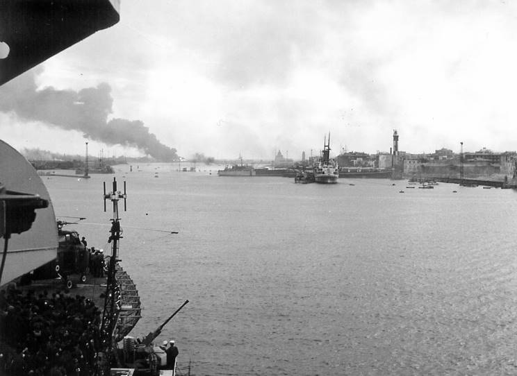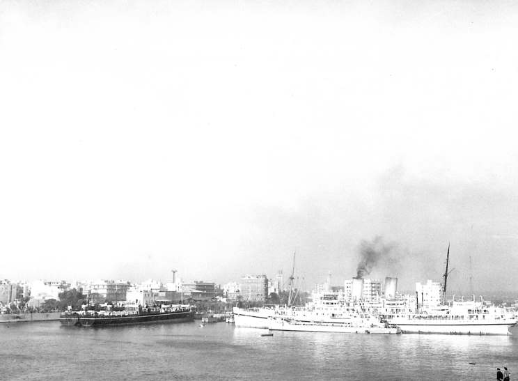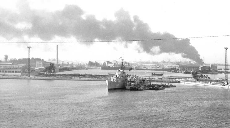 November 1956: Port Said, Egypt seen from HMS Theseus. |