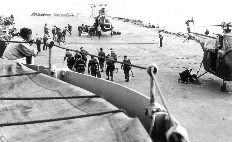 November 1956: Royal Marines preparing to leave HMS Theseus for Port Said during the Suez Crisis. |
