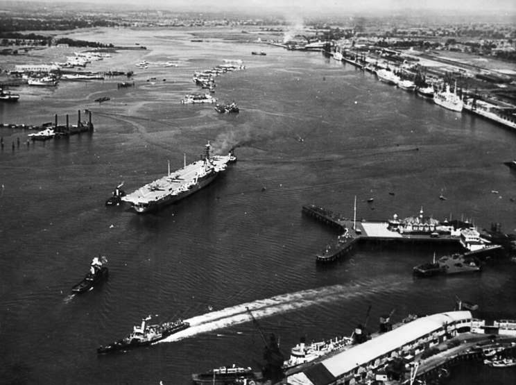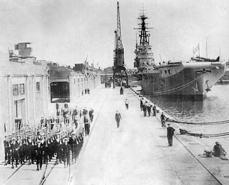 HMS Triumph at Southampton, England. |