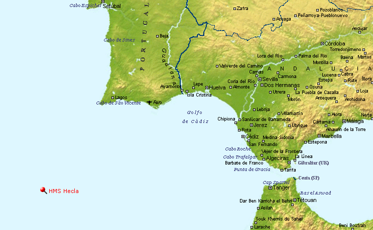 Cape Agulhas, South Africa. 24 crewmen were killed. The ship was towed to Simonstown by HMS Gambia and two South African navy minesweepers, Southern Barrier and Terje. Out of action until late Sept. 1942. |