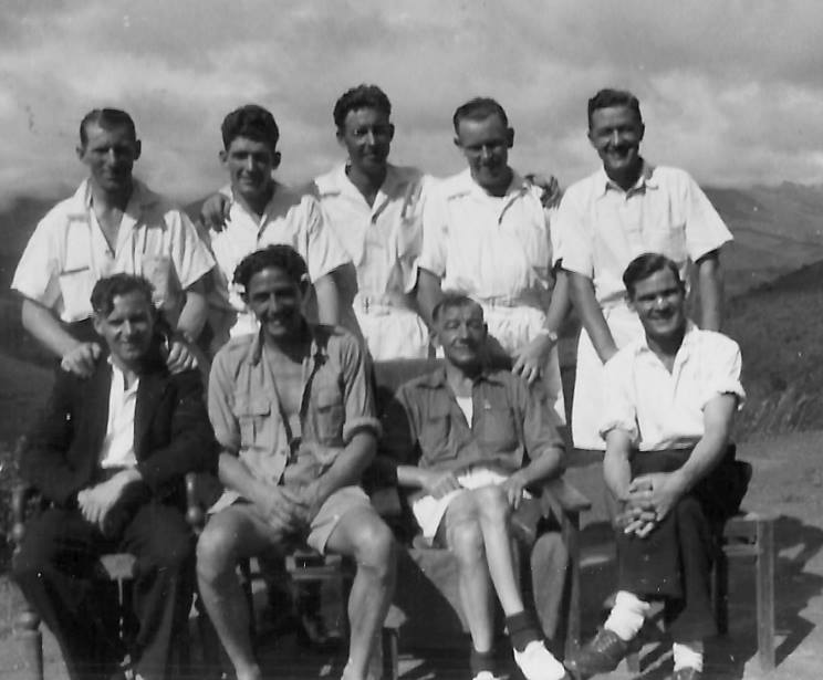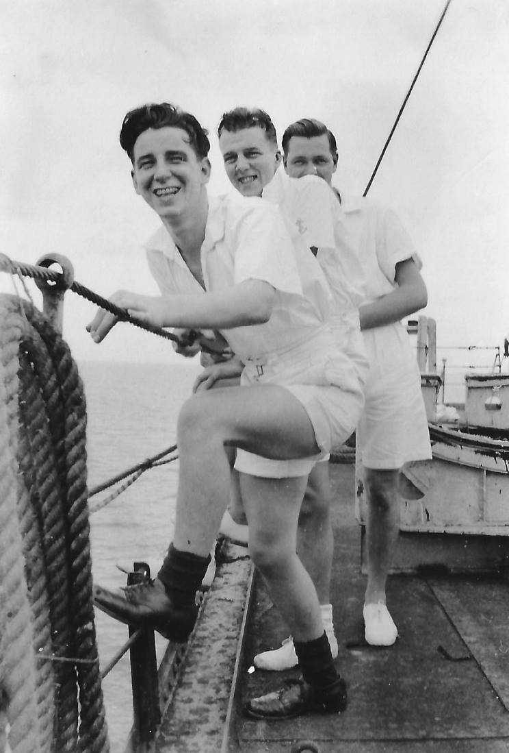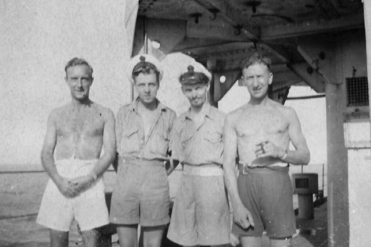 Kenneth Charles Collings (left) and three unidentified crewmen seen on HMS Hecla. |