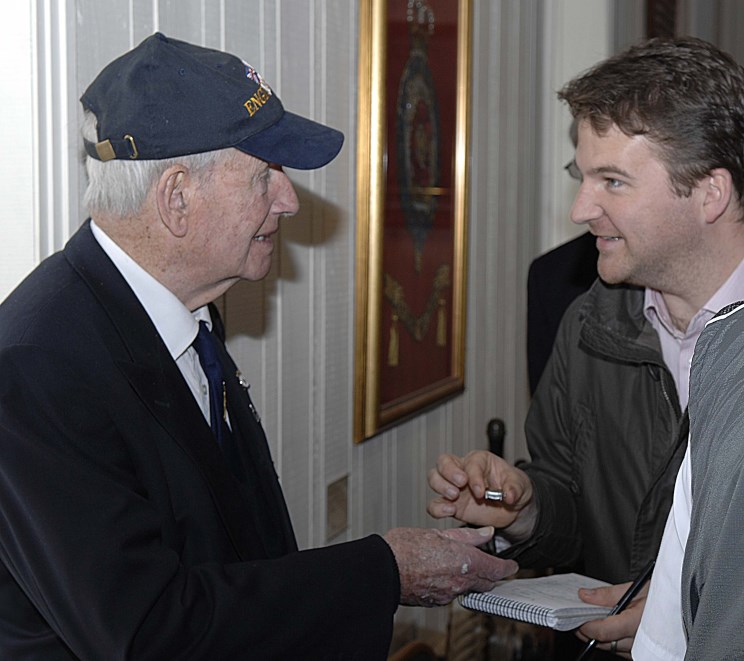 April 14, 2010: George Male and Portsmouth News Defence Correspondent Matt Jackson seen at the National Museum of the Royal Navy during the launch of the book A Hard Fought Ship: The Story of HMS Venomous. |