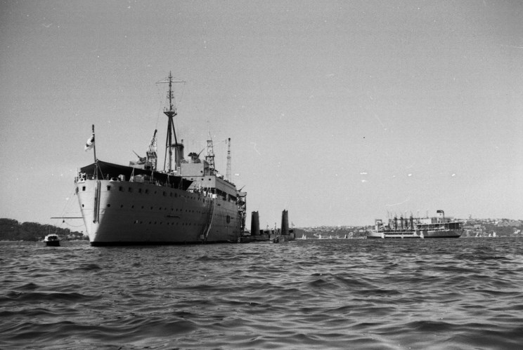 HMS Maidstone A-185 seen with HMS Dreadnought S-101 and HMS Ursa F-200 alongside. |