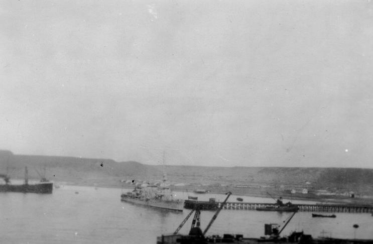 July 14, 1929: HMS Caradoc in the English Narrows, Chile. |