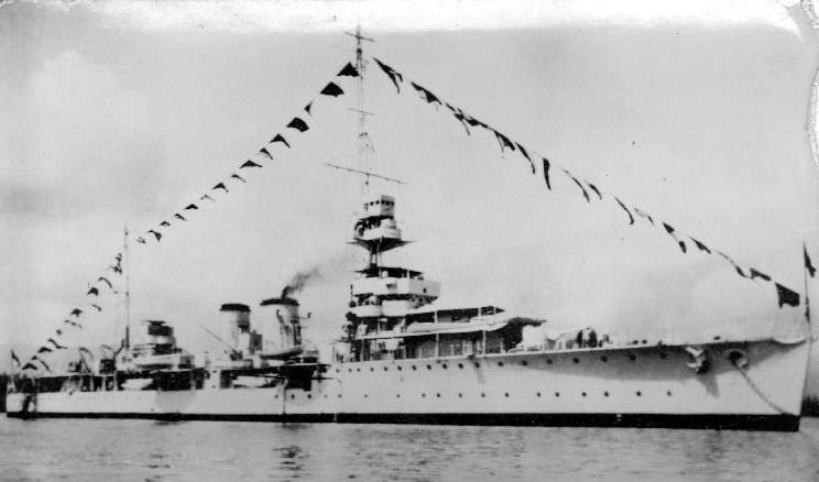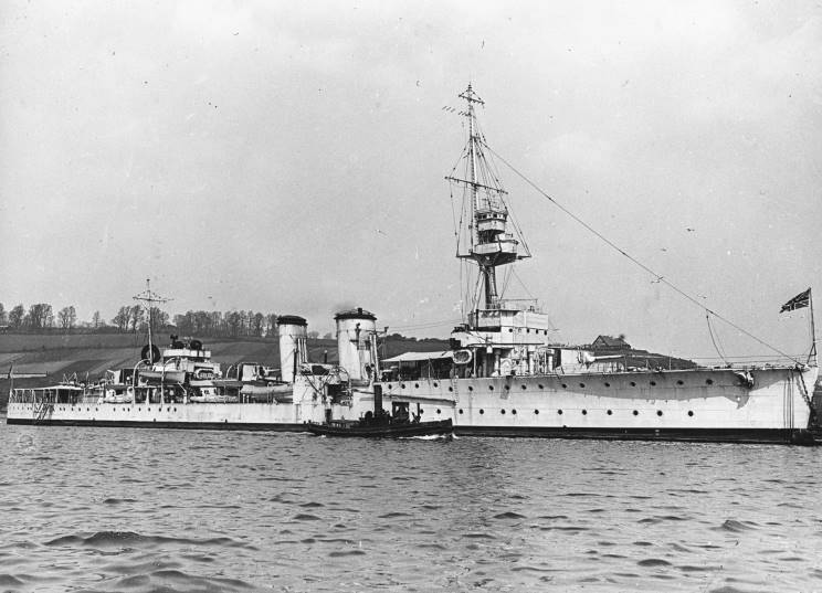 HMS Caradoc seen at Talara Bay, Peru in 1929. |