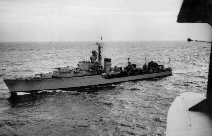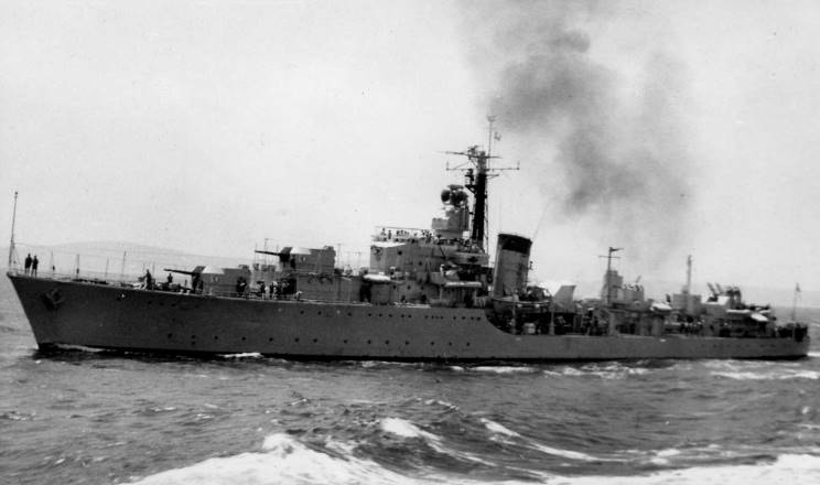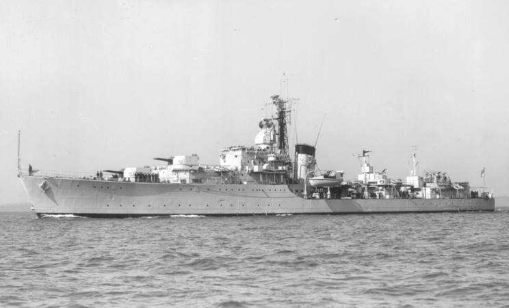 April 18, 1951: HMS Agincourt D-86 seen in the English Channel during the search for the sunken submarine HMS Affray P-421. |