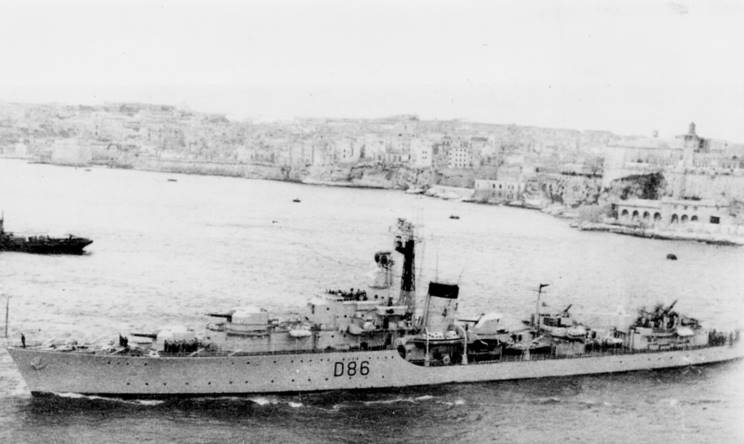 HMS Agincourt D-86 seen at Malta. |