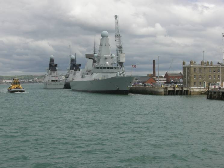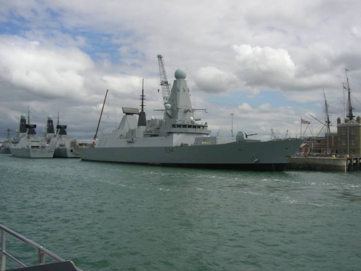 May 27, 2011: HMS Diamond D-34 seen at HM Naval Base Portsmouth. HMS Dauntless D-33 and HMS Daring D-32 are seen astern. |